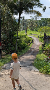 The landscape is breathtaking—endless green terraces, water glistening under the sun, and narrow dirt paths winding between the paddies. The kids run ahead, laughing as they try to balance on the small ridges separating the fields, while we take in the peaceful rhythm of daily life in Sidemen.