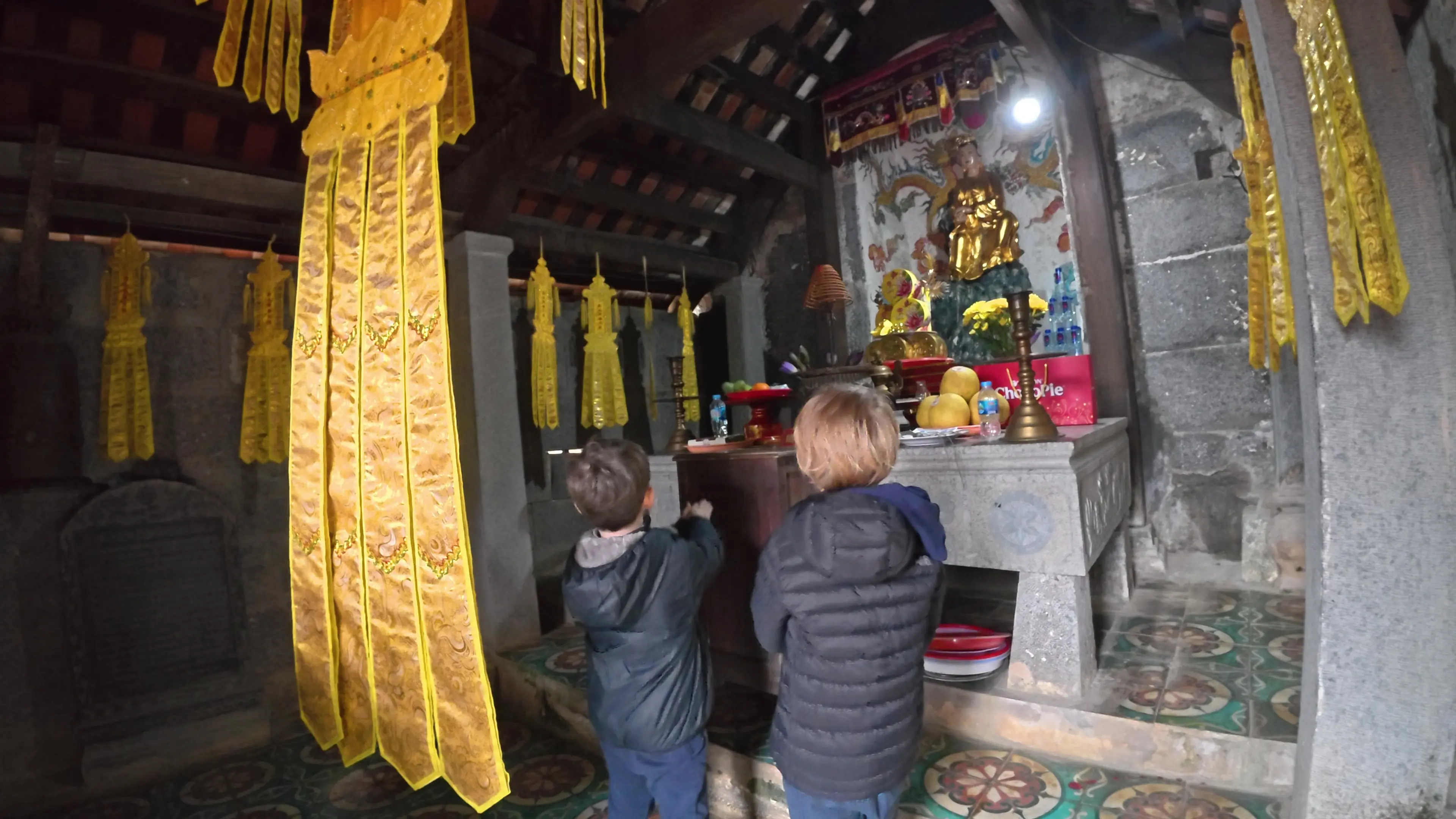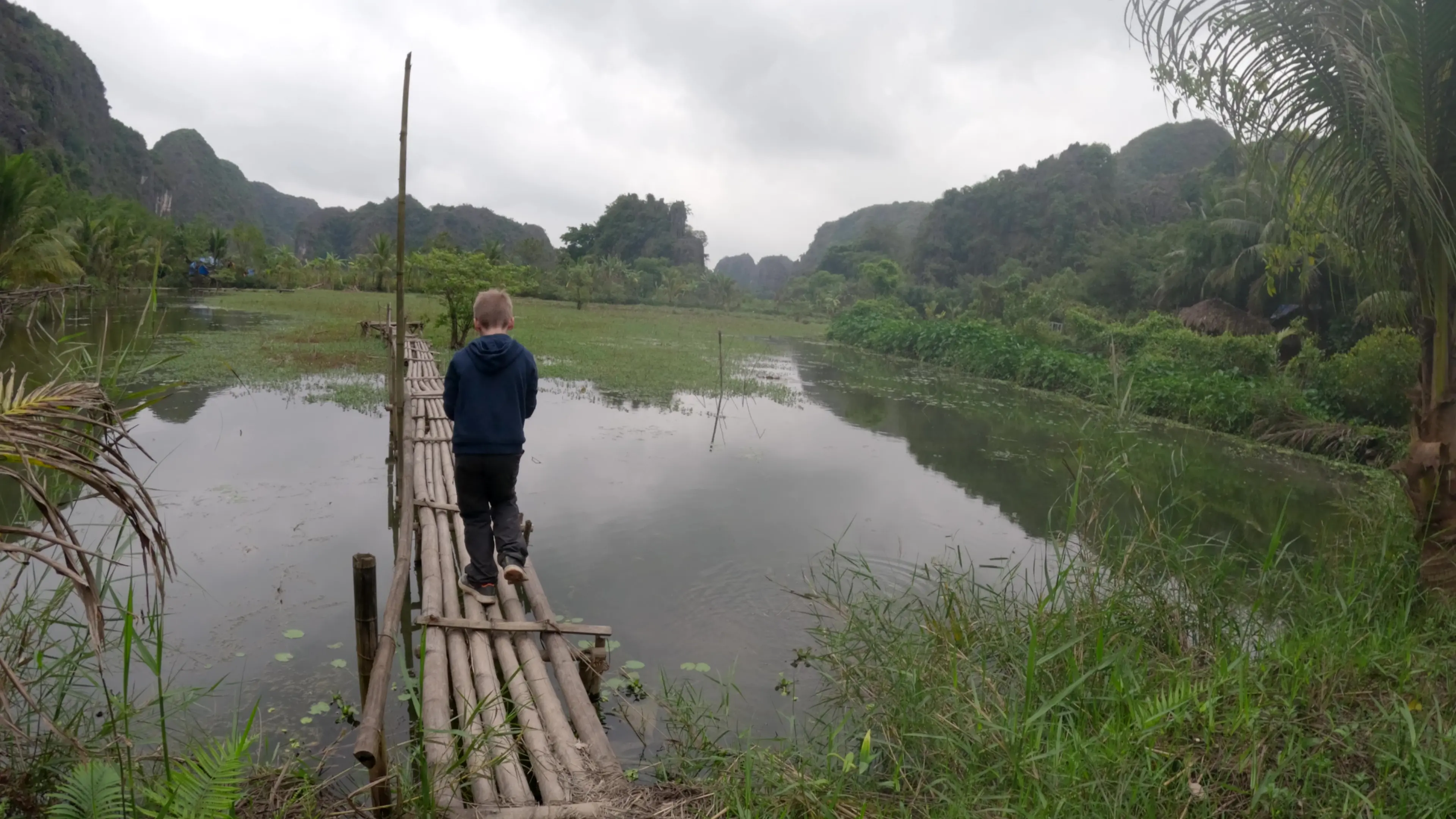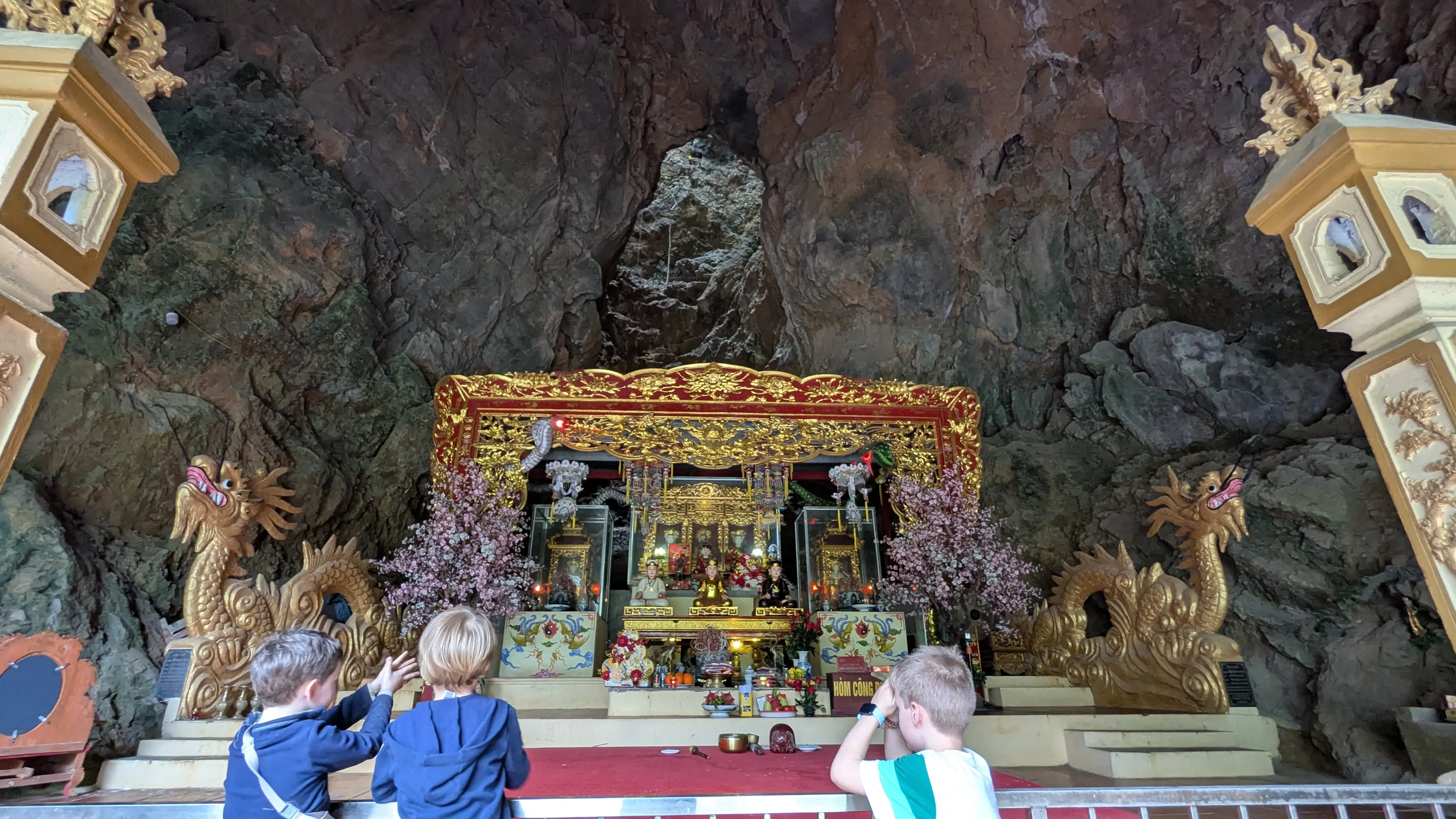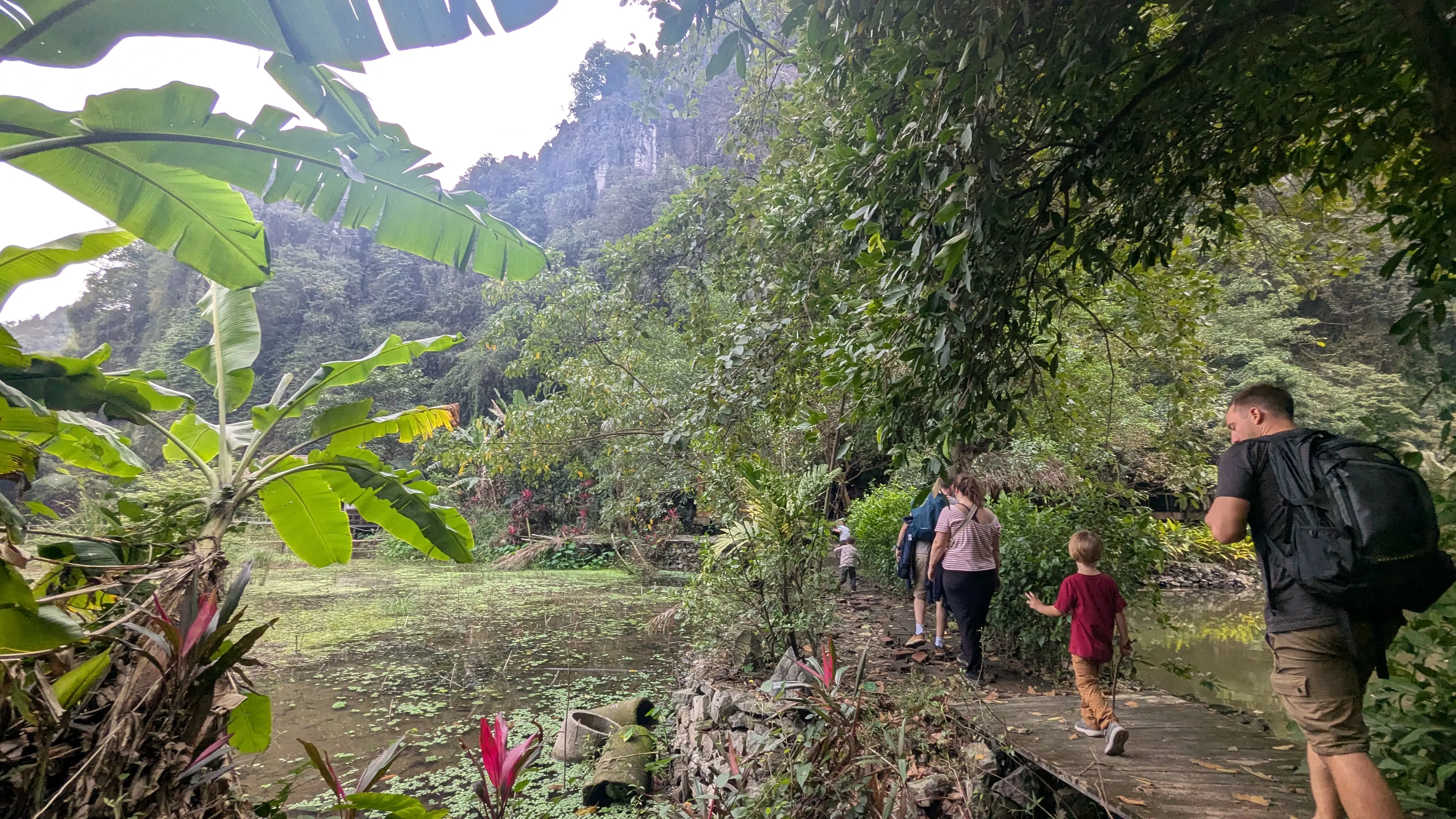 Trois jours de plus à Tam Coc, avec un temps plus clément*, et tant mieux ! Ça nous a permis de refaire Bich Dong tous ensemble et de laisser la famille Lechantre découvrir Mua Cave et Trang An** pendant que nous, on prenait un peu de repos. Les enfants étaient ravis de partager ces moments avec Arthur et Hugo, et inutile de dire qu’à quatre copains, l’ambiance était électrique !